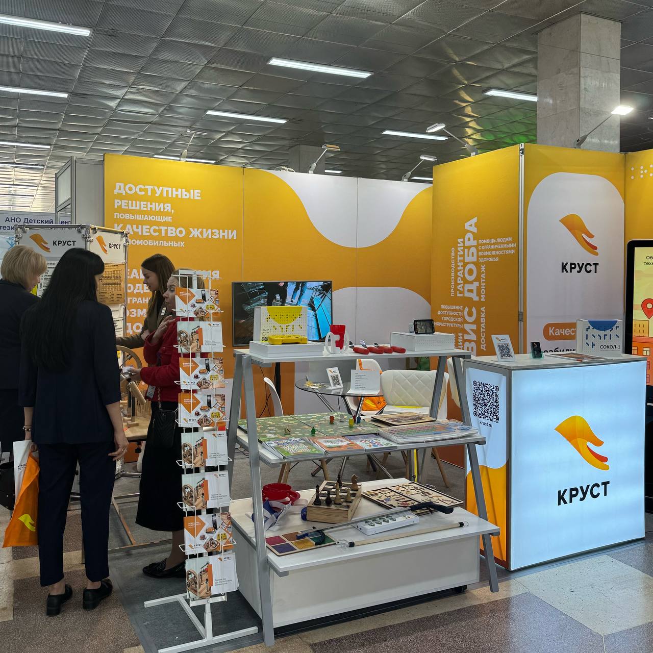 Гости нашего стенда познакомились с новинками в области медицинских изделий для инвалидов, реабилитационного и развивающего оборудования. Мы представили много интересных товаров собственного производства: от флагманского тифлофлешплеера "Войса", видеоувеличителя "Сокол", тренажеров механотерапии, игр и пособий для слабовидящих детей до малых средств реабилитации. Посуда, адаптированная для людей с ОВЗ, захваты для застегивания пуговиц, надевания одежды и обуви, контейнеры для таблеток, расчески для инвалидов: все эти небольшие, но необходимые в быту вещи можно было посмотреть и протестировать прямо на выставке.