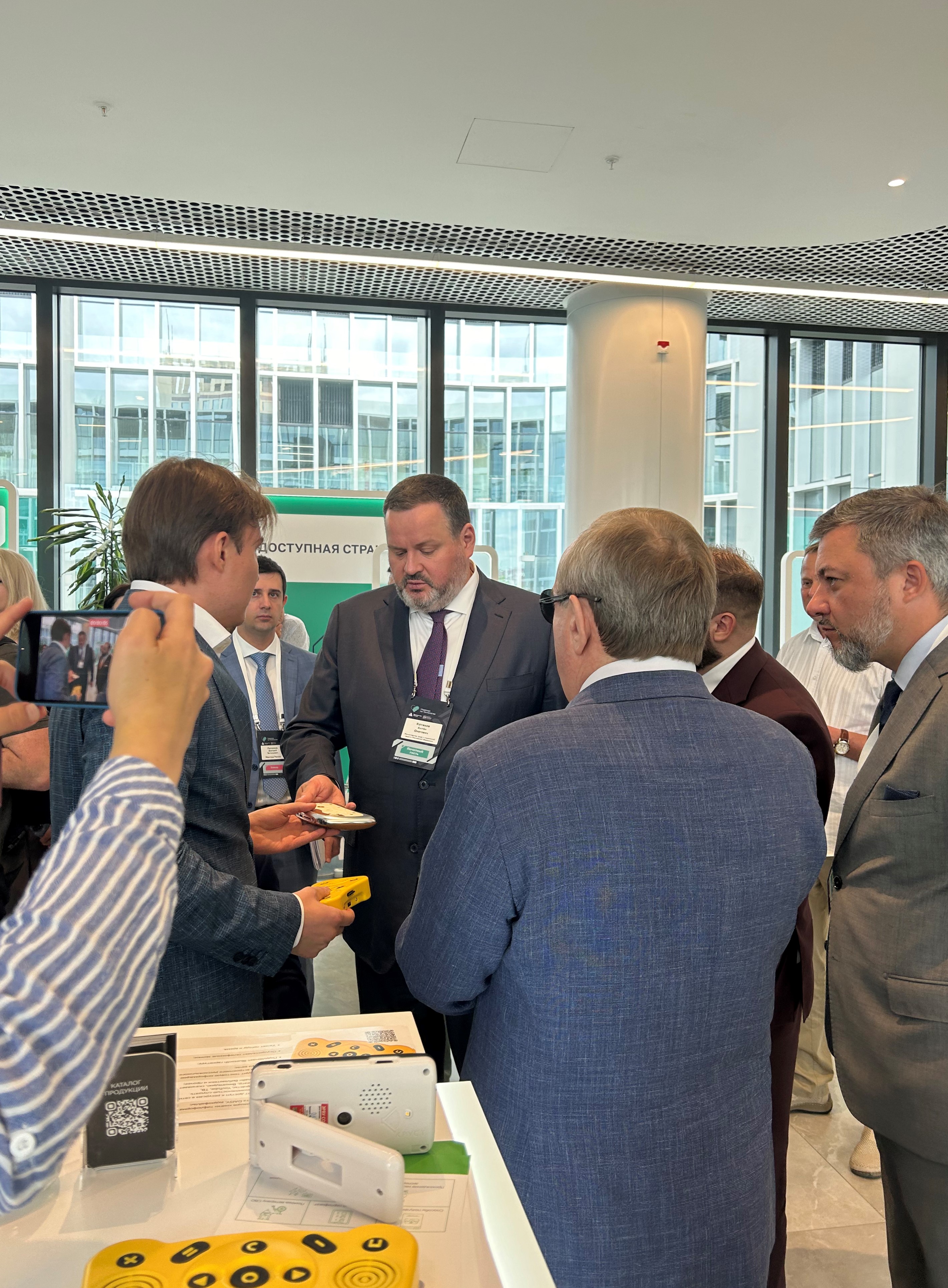 Во время выставки наш стенд посетил министр труда и социальной защиты РФ Котяков Антон Олегович. Директор ООО «Круст» Грибанов Сергей Андреевич представил ему флагманский продукт компании - современный гаджет для незрячих «Войса».